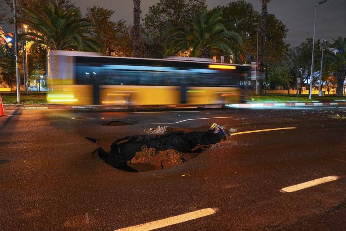 İSTANBUL (AA) - Fatih'te kuvvetli sağanak nedeniyle Adnan Menderes Bulvarı'nda (Vatan Caddesi) çökme meydana geldi.