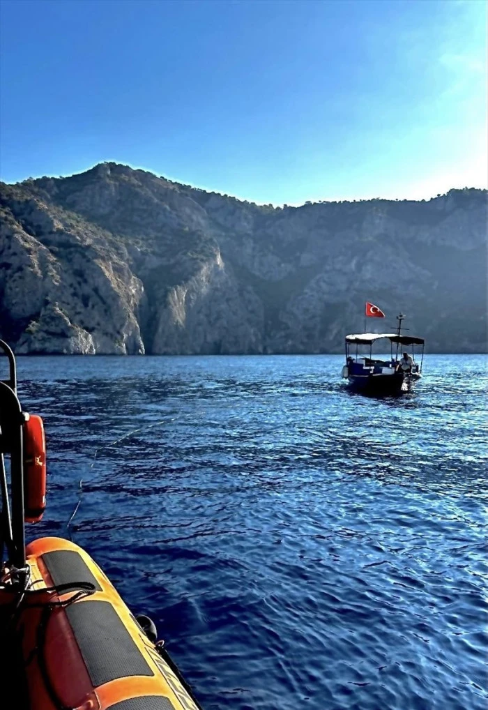 KIYEM-5 hızlı tahlisiye (can kurtarma) botuna yedeklenen tekne ise Fethiye Koyu'na yanaştırıldı.