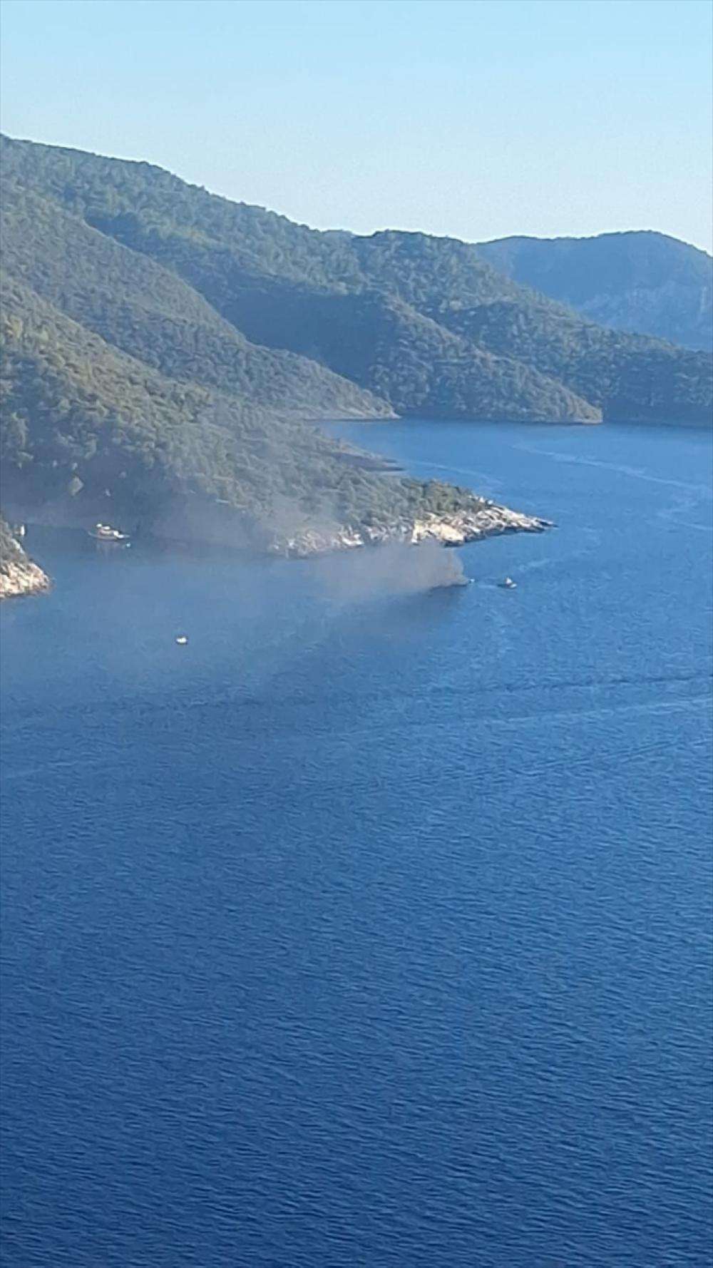 Kısa sürede büyüyen yangına, Muğla Orman Bölge Müdürlüğüne ait hava araçları ile denizde Sahil Güvenlik Ekipleri müdahale etmeye başladı. Ekipler, yangını kontrol altına almak için çalışmalarını sürdürüyor.