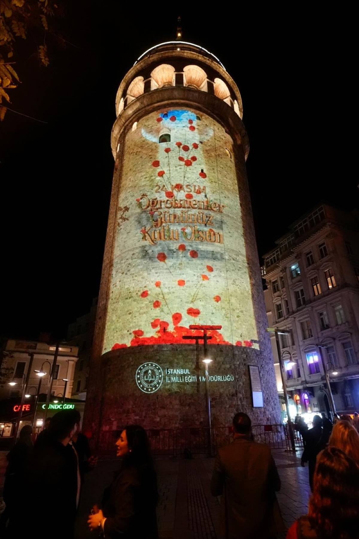 İstanbul İl Milli Eğitim Müdürlüğü tarafından düzenlenen mapping gösteriminde, "24 Kasım Öğretmenler Gününüz Kutlu Olsun" yazısı kuleye yansıtıldı.
