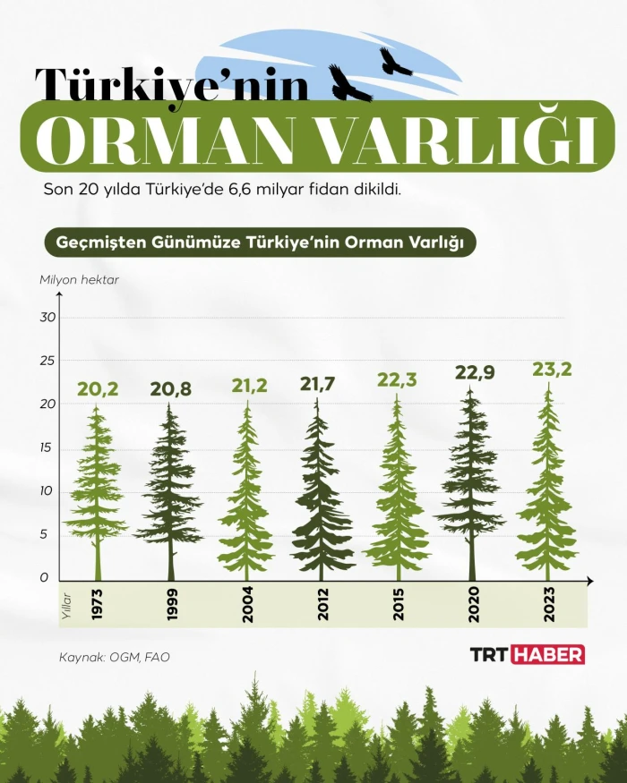 FAO raporunda, küresel ısınma ve sanayileşme süreçlerinin tüm dünyada ormanlık alanları tehdit ettiğine işaret edilirken, Türkiye’nin dünyada her yıl ormanlık alanlarını en çok artıran ülkeler arasında yer alması dikkati çekti.