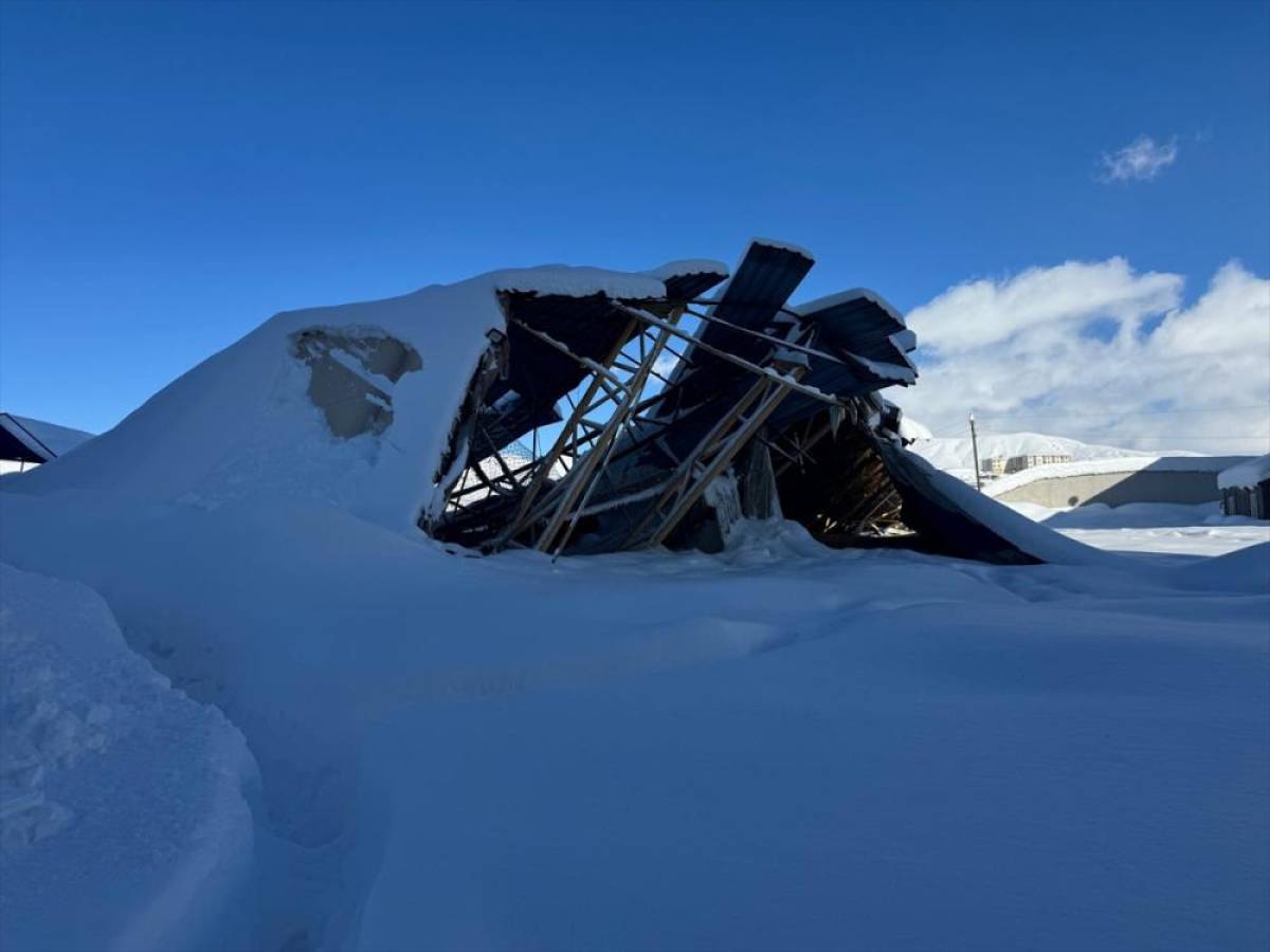 Hakkari'de kar nedeniyle bazı halı saha ve binaların çatıları çöktü