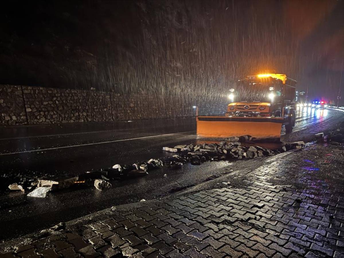 HAKKARİ (AA) - Hakkari'de etkili olan sağanak nedeniyle kara yoluna düşen kaya parçaları, ekiplerin çalışmasıyla kaldırıldı.