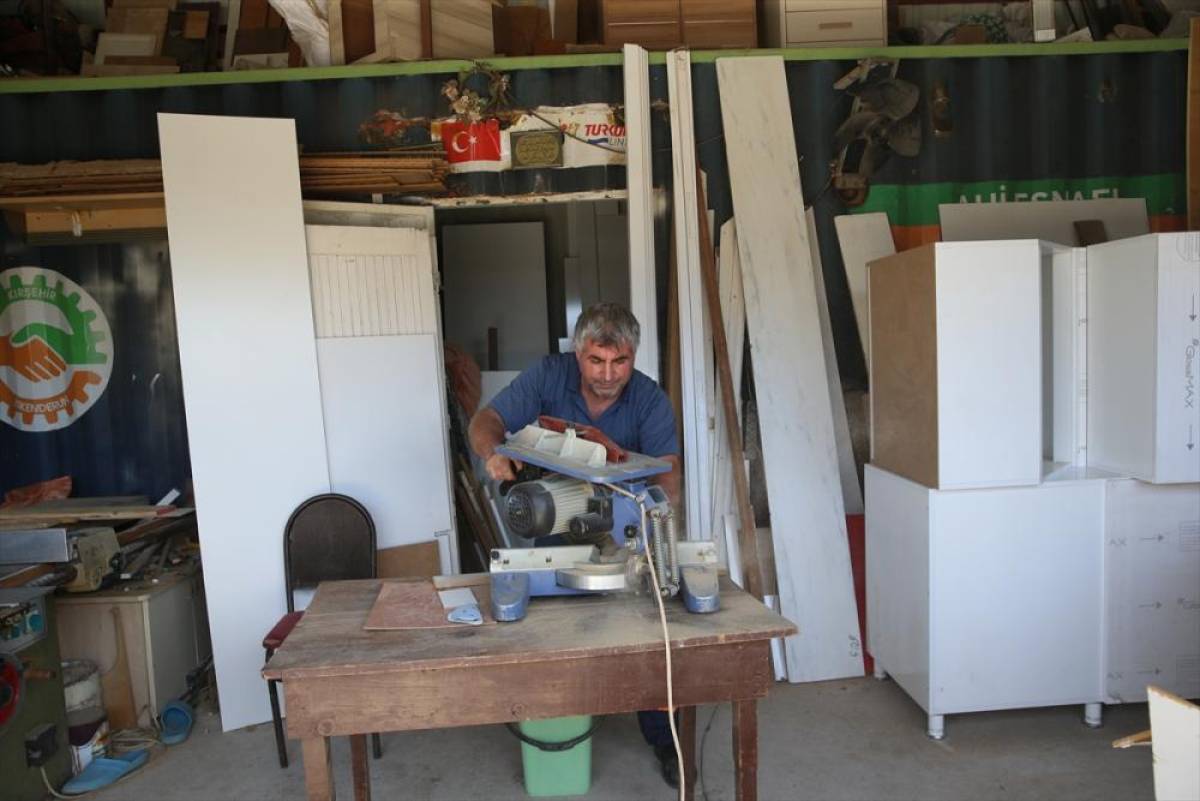 Kahramanmaraş merkezli 6 Şubat 2023'teki depremde Muradiye Mahallesi'ndeki iş yeri ağır hasar gören 52 yaşındaki Mehmet Mithat Öğütçü, atölyesini geçen yıl Ahi Evran Konteyner Sanayi Sitesi'ne taşıdı.