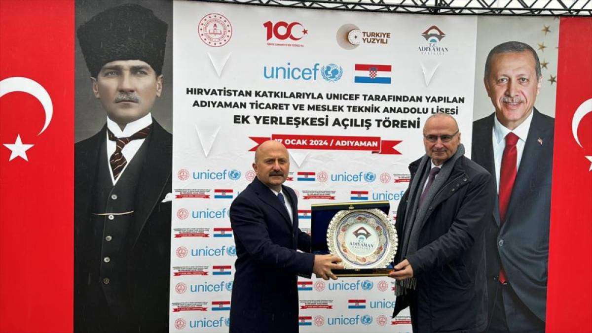 ADIYAMAN (AA) - Hırvatistan, Birleşmiş Milletler Çocuklara Yardım Fonu'nun (UNICEF) katkılarıyla 6 Şubat depremlerinden etkilenen Adıyaman'a çelik konstrüksiyondan 8 derslik, 3 atölye ve 3 idari ofis yaptırdı.