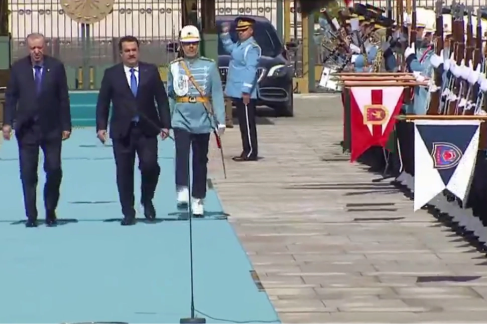 Törende, tarihte kurulan 16 Türk devletini temsil eden bayraklar ve askerler yer aldı, top atışı yapıldı. Erdoğan ve Sudani, iki ülke bayrakları önünde tokalaşarak basın mensuplarına poz verdi. İkili, daha sonra heyetler arası görüşmelere geçti.