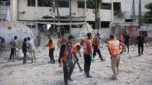 GAZZE (AA) - İsrail ordusu, Gazze Şeridi'nin kuzeyindeki Beyt Lahiya beldesinde zorla yerinden edilen Filistinlilerin bulunduğu okulun çevresini hedef aldı, Filistinlilerin evlerini havaya uçurmak için patlayıcı yerleştirdi.