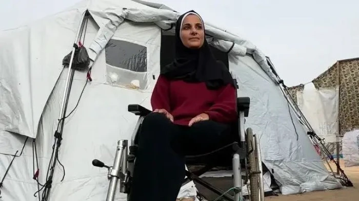 İsrail saldırılarında uzuvlarını kaybeden Filistinli kadın çadırda yaşam mücadelesi veriyor