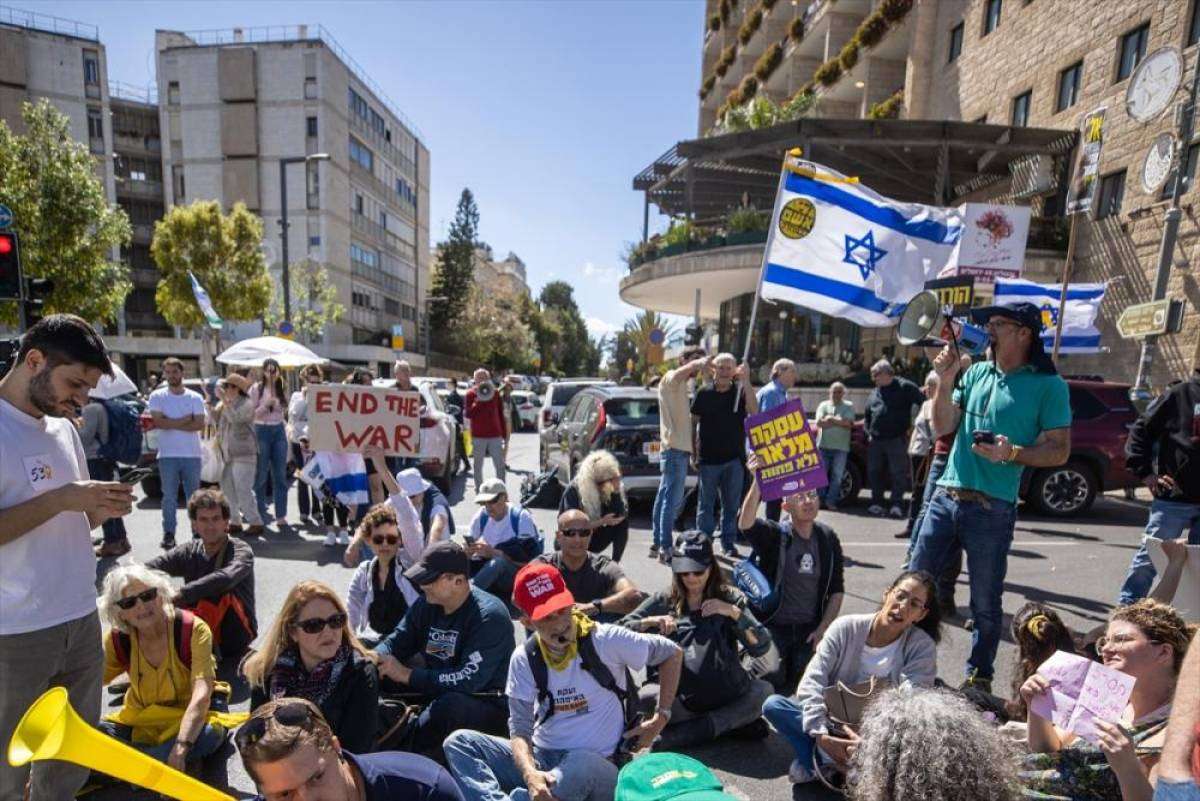 Ardından, İsrail Meclisi çevresinde bakanlıklar ve devlet binalarının bulunduğu Batı Kudüs'teki meydanda toplanan on binlerce kişi, Netanyahu hükümetinin istifası ve erken seçim çağrısıyla protesto düzenledi.