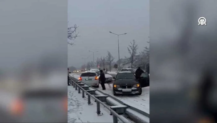 İSTANBUL (AA) - İstanbul'da kar yağışı nedeniyle buzlanan yollardaki trafik kazaları ve araçların yolda kalması cep telefonu kamerasıyla kaydedildi.