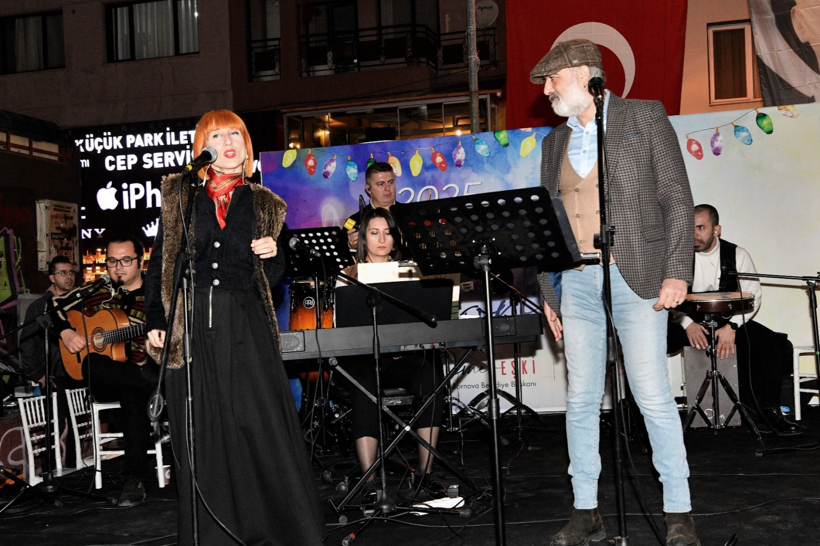 İZMİR (İGFA) - İzmir Bornova Belediyesi Hobi ve Beceri Edindirme Kursları’nda görev yapan müzik eğitmenlerinden oluşan ve Bornova Belediye Başkanı Ömer Eşki’nin öncülüğünde kurulan Grup Bournabat ve Grup İlyada, sahne performanslarıyla unutulmaz bir gece yaşattı. Özellikle üniversite öğrencilerinin yoğun ilgi gösterdiği konser, geniş bir repertuarla keyifli anlara sahne oldu. Eşi Beste Eşki ve kızı Asya Tuna ile birlikte konsere katılarak vatandaşların yeni yıl sevincine ortak olan Başkan Ömer Eşki, “Bornova’yı bir kültür ve sanat kenti yapma hedefimize adım adım yaklaşıyoruz. Bu tür etkinlikler, hemşehrilerimizle aynı coşkuyu paylaşmak için harika bir fırsat. Yeni yılda da sanat ve kültür projelerimizle Bornovalılara dokunmaya devam edeceğiz” dedi.