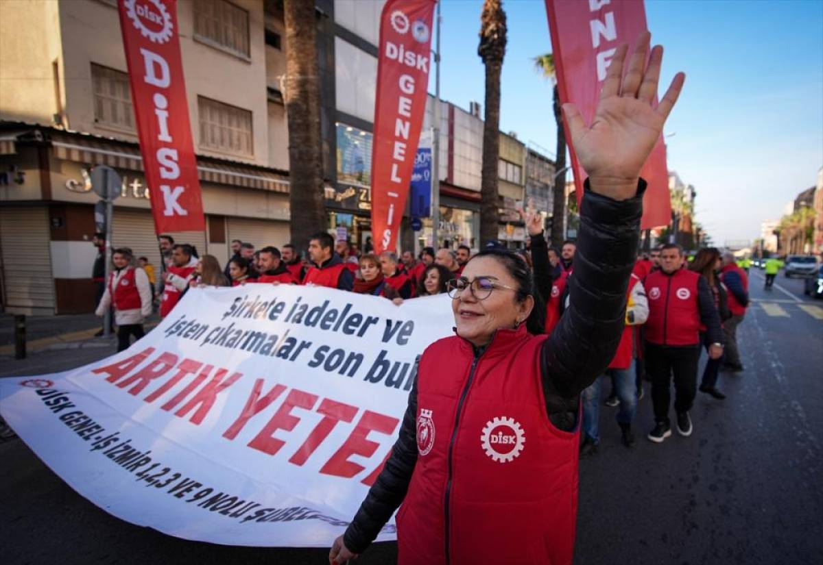 "Şirkete iadeler ve işten çıkarmalar son bulsun, artık yeter" yazılı pankart açan ve çeşitli sloganlar atan işçiler, Fevzipaşa Bulvarı'ndan Kültürpark 9 Eylül Kapısı'na yürüdü.