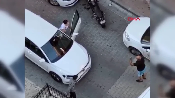 İSTANBUL (AA) - Kağıthane'de motosiklet ile otomobil sürücülerinin yol verme nedeniyle kavga ettiği anlar cep telefonu kamarasıyla kaydedildi.