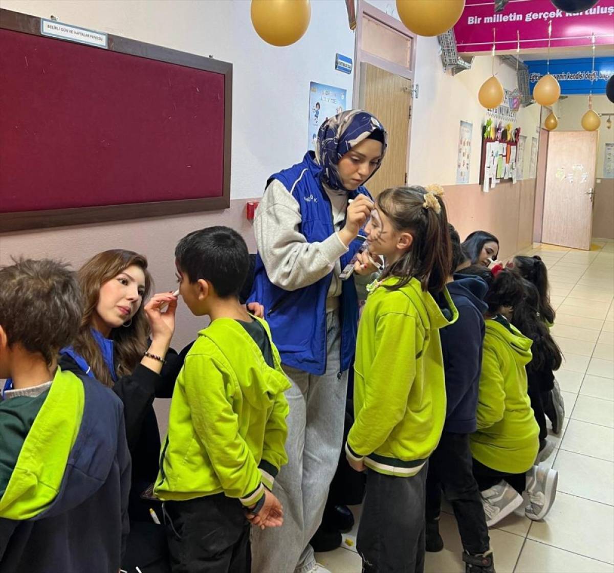 Gönüllü öğrenciler ise yüz boyama, zeka oyunları ve palyaço gösterisi sundu.