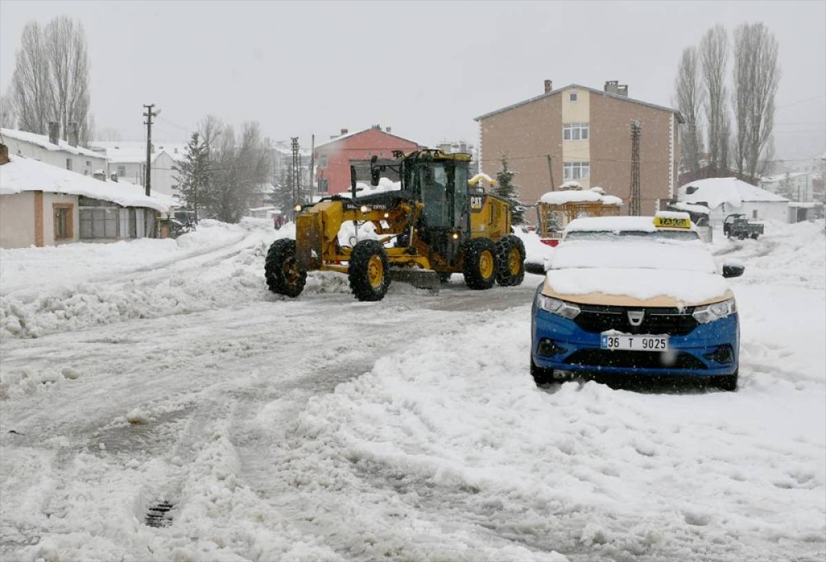 Kar kalınlığının 1 metreyi aştığı Sarıkamış'ta biriken kar şehir dışına taşınıyor