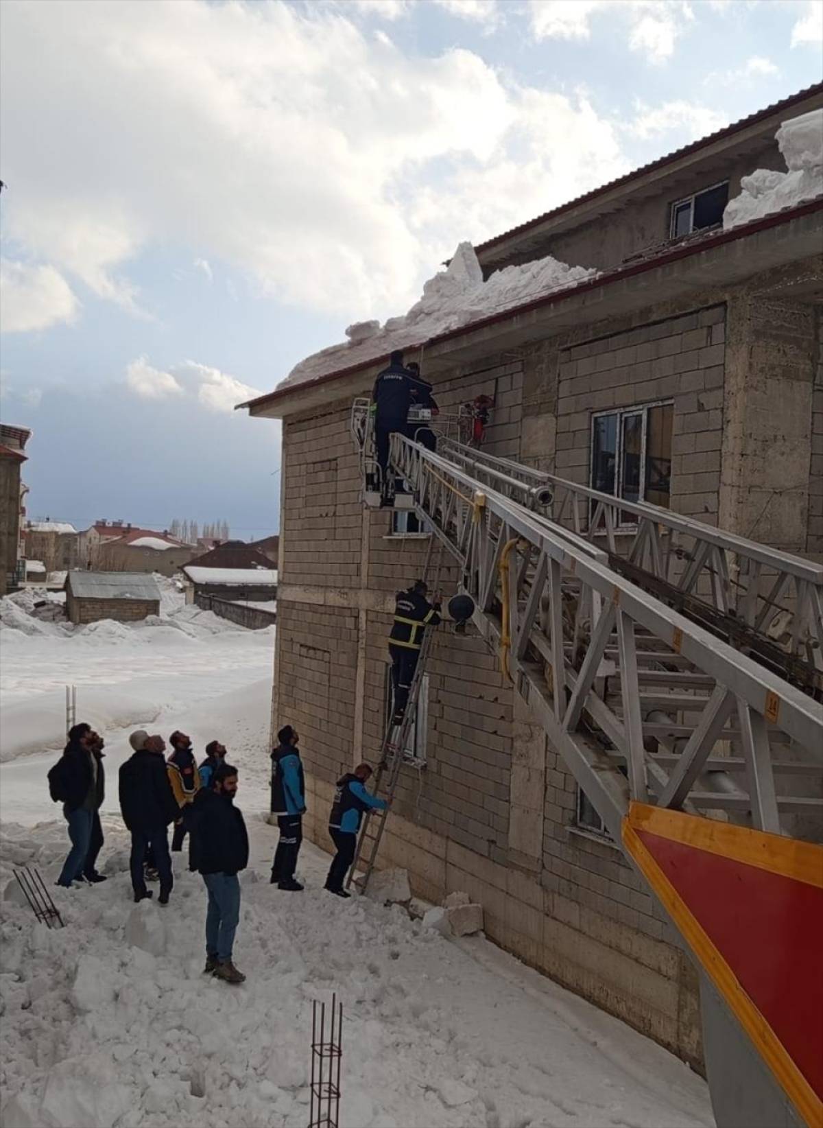 Kar temizlerken ayağının kayması sonucu çatıda asılı kalan kişiyi ekipler kurtardı