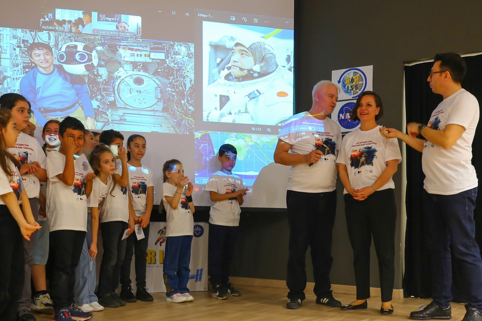 İZMİR (İGFA) - Etkinlikte, Japon astronot Takuya Onishi ile doğrudan telsiz bağlantısı kuran çocuklar, İngilizce olarak merak ettikleri soruları astronota yöneltti. Uzaydan canlı yanıt alma heyecanını yaşayan çocuklar, unutulmaz bir deneyim yaşadı.