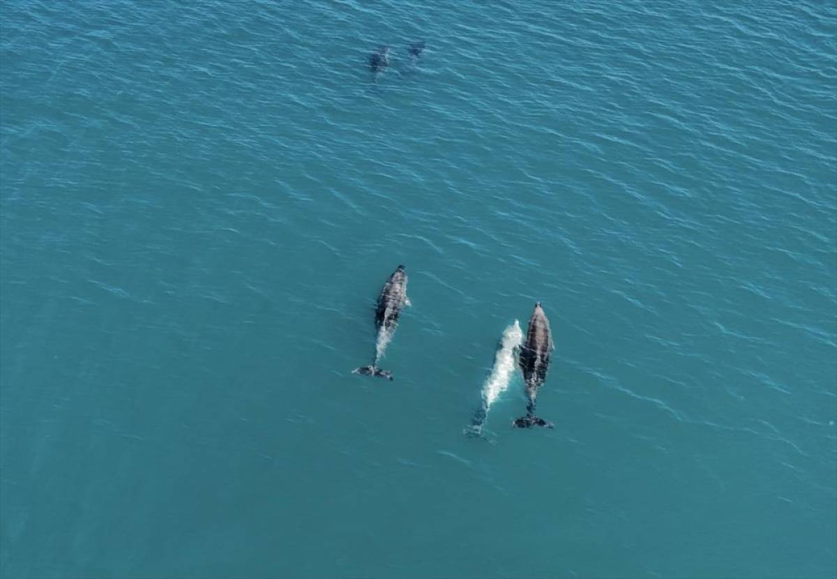 Karadeniz'de sürü halinde dolaşan yunuslar dronla görüntülendi