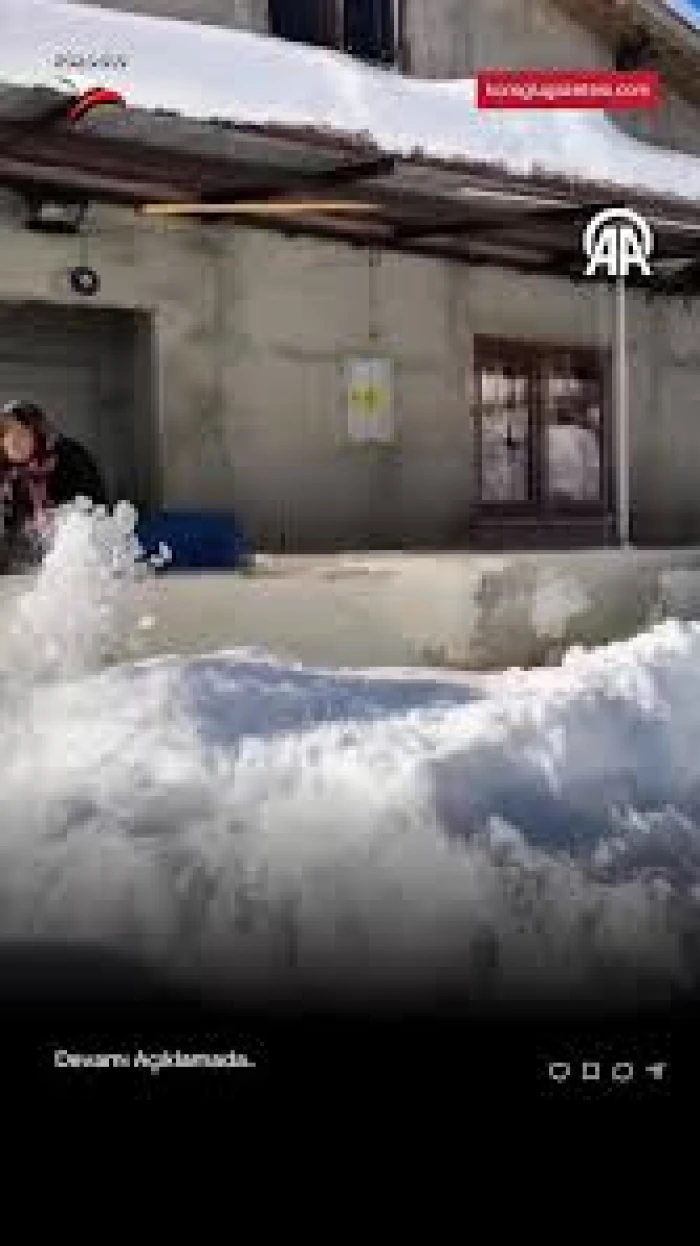 Yol kenarında evi bulunan Fatma Örnek’in kullandığı yolun iş makinesiyle temizlenememesi üzerine, ekipteki sürücülerden Hikmet Başpınar evin önündeki yolu kürekle açtı.