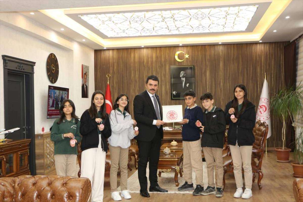 Kaymakamlık ziyaretinde öğrencilere, İlçe Milli Eğitim Müdürü Mehmet Ali Yıldız, Okul Müdürü Fazıl Dilsiz ve Türkçe Öğretmeni Onur Baz eşlik etti.