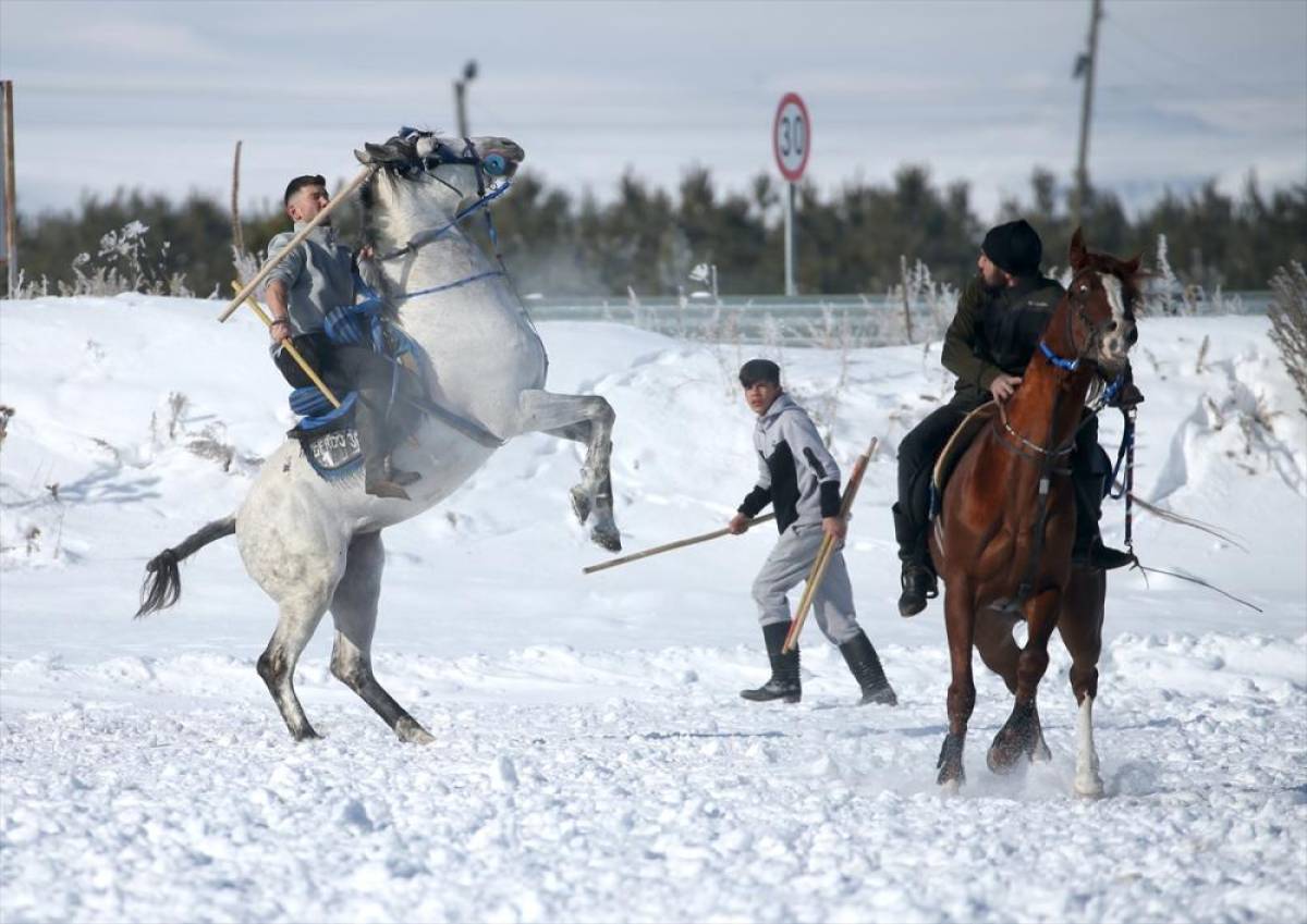 Yüzyıllardır Anadolu'da yaşatılan cirit, Selim ilçesinde bu yıl etkili olan yoğun kar yağışının ardından ata sporunu yaşatmaya çalışan vatandaşların eğlencesi oluyor.