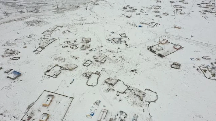 Kars'ta karla kaplanan köyler dronla görüntülendi