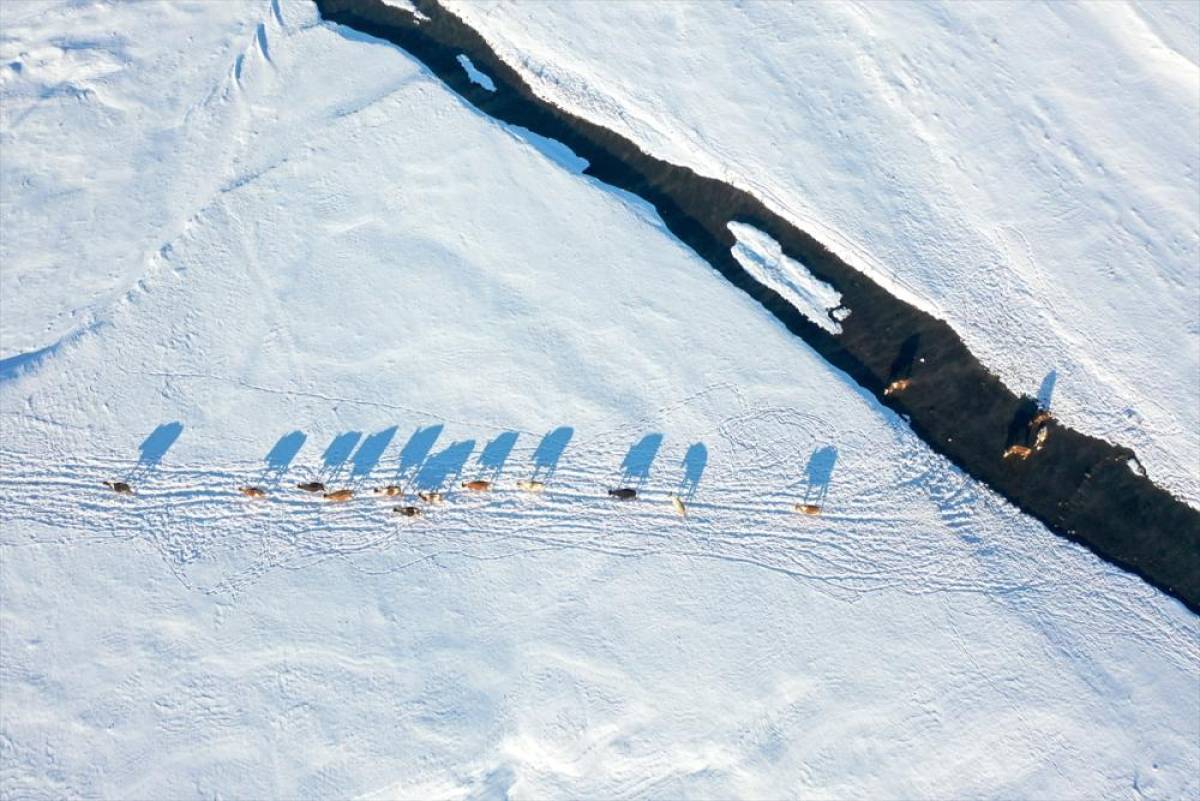 Tarımla hayvancılığa can suyu olan menderesler, karla kaplı haliyle dronla görüntülendi.