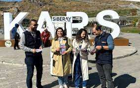 Kars Kalesi eteklerindeki Bedesten bölgesinde stant kuran polis ekipleri, dolandırıcılığa karşı vatandaşları bilgilendirip broşür dağıttı.