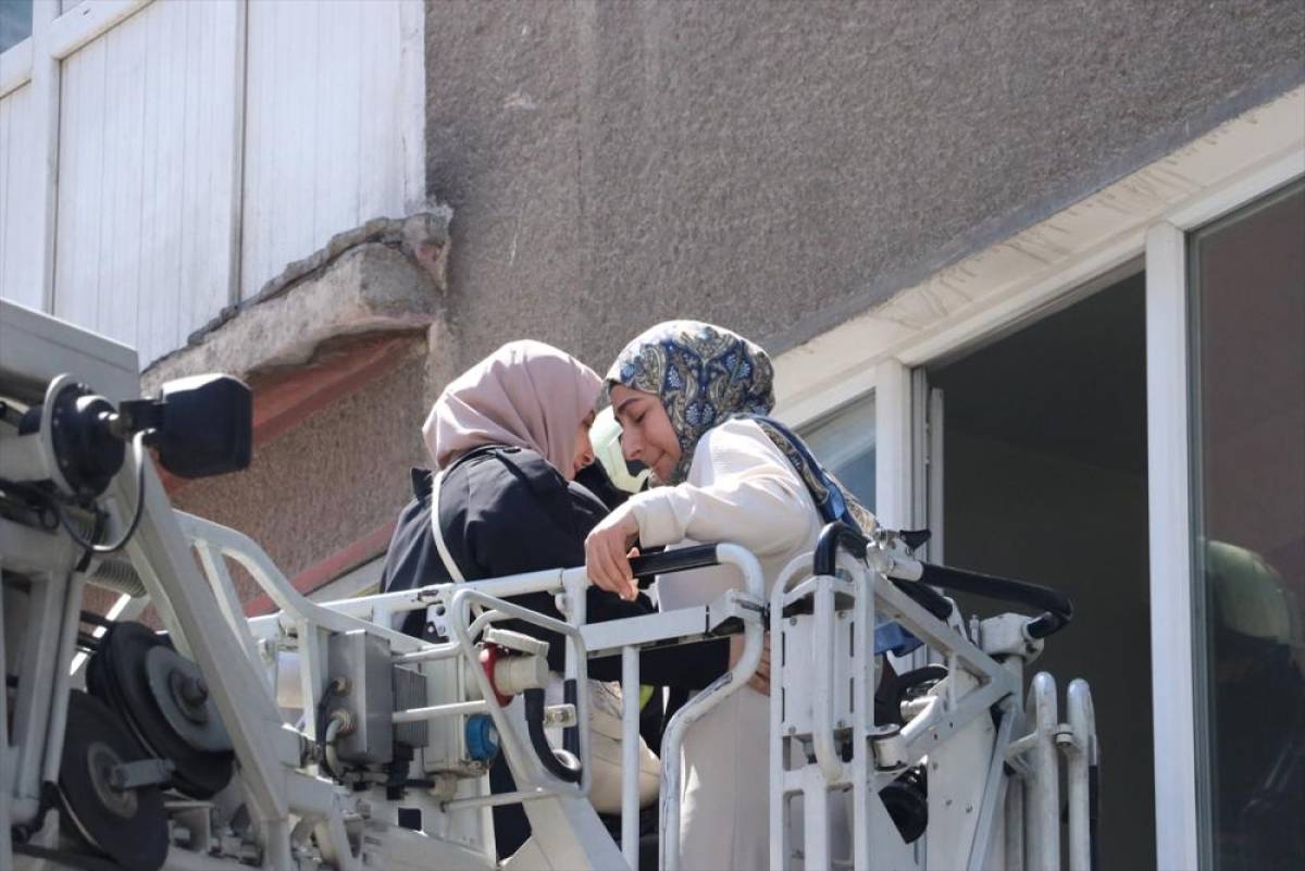 Evlerinde mahsur kalan bazı apartman sakinleri, itfaiye ekiplerince merdiven yardımıyla tahliye edildi.