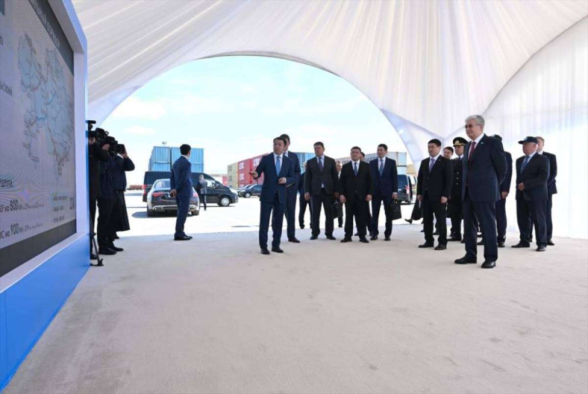 Ulaştırma Bakanı Marat Karabayev, burada Tokayev'e bölgenin ulaşım ve lojistik altyapısını geliştirmeye yönelik çalışmalar hakkında bilgi verdi.