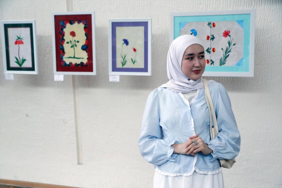 Türkiye'nin Bişkek Büyükelçiliğinin destekleriyle Kırgız Ulusal Güzel Sanatlar Müzesi'nin ev sahipliğinde düzenlenen sergide, dünyaca ünlü ebru sanatçısı Hikmet Barutçugil ve öğrencisi Muhlisa İmamova, Türk süsleme sanatının örneklerini yansıtan eserlerini tanıttı.