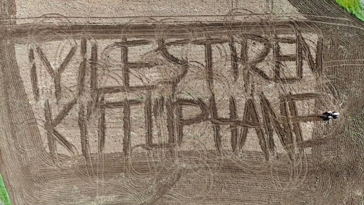 Kırklarelili çiftçi tarlasına pullukla "İyileştiren kütüphane" yazdı