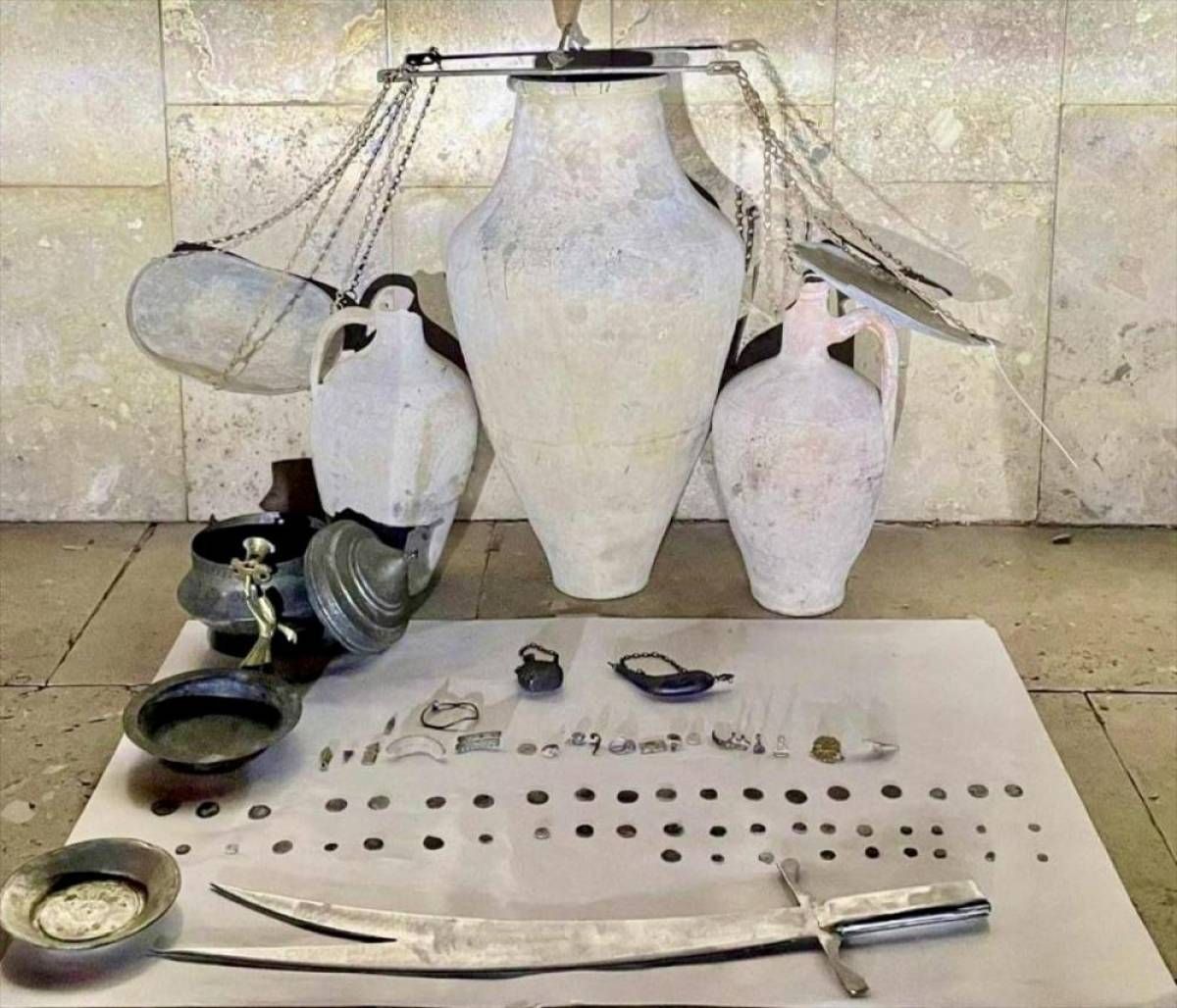 İl Jandarma Komutanlığı ekipleri, 2 şüphelinin ellerinde bulunan tarihi eser niteliğindeki objeleri satmaya çalıştıklarına dair aldıkları bilgi üzerine çalışma başlattı.