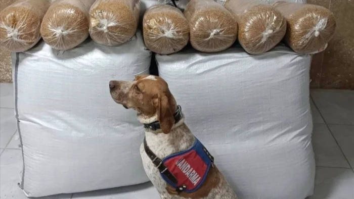Otobüsün bagajında dedektör köpeğinin de desteğiyle yapılan aramada, torbalar ve poşetler içerisinde 400 kilogram satışa hazır kaçak kıyılmış tütün ele geçirildi.