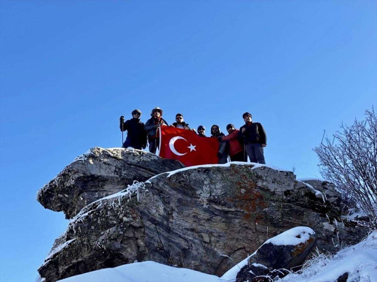 Türk bayrağı açıp, saygı duruşunda bulunarak İstiklal Marşı'nı okuyan dağcılar, daha sonra kent merkezine döndü.