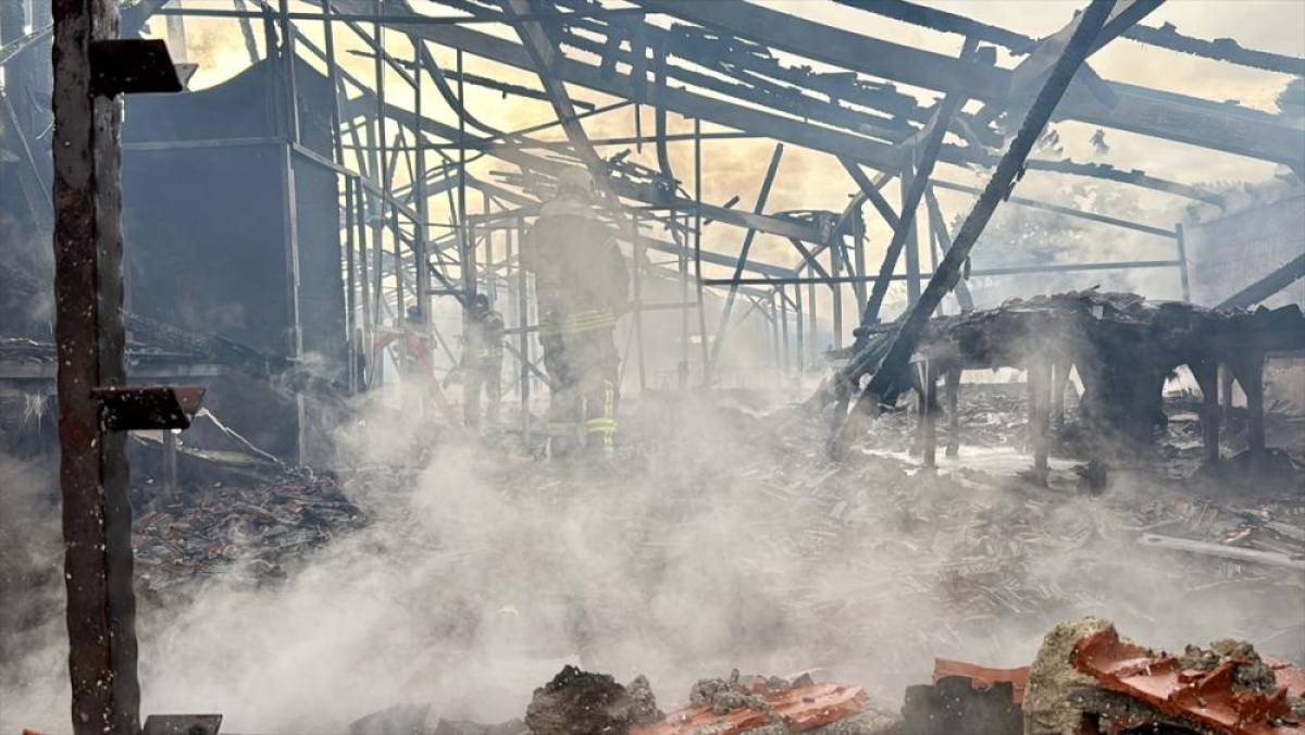 İtfaiye personelinin yaklaşık 1 saatlik çalışması sonucu söndürülen yangında imalathane kullanılamaz hale geldi.