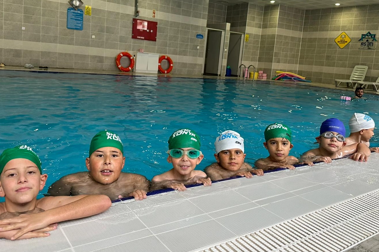 Konya Büyükşehir Belediyesi’nin “ Yüzme Bilmeyen Kalmasın” projesi 20 ilçede devam ediyor. Proje kapsamında öğrenciler, hafta içi ders saatinde Büyükşehir Belediyesi tarafından servislerle okuldan alınıp eğitimleri bittikten sonra yeniden okullarına bırakılıyor.