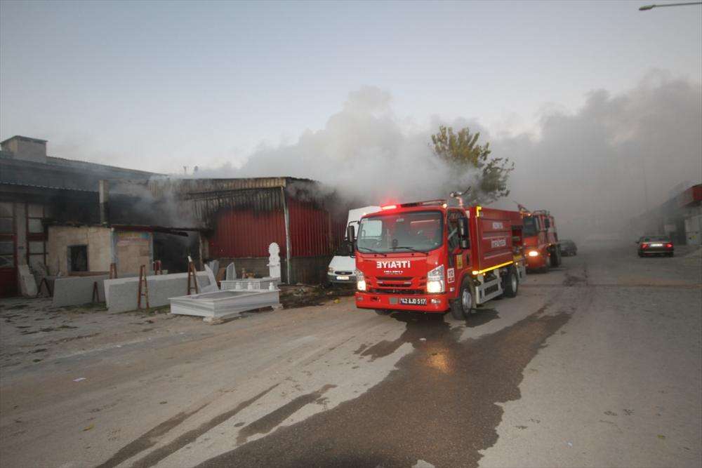 KONYA (AA) - Konya'nın Beyşehir ilçesinde, sanayi sitesinde bir mermer atölyesinin yazıhanesinde çıkan ve bitişiğindeki mobilya imalathanesine sıçrayan yangın uzun uğraşların ardından kontrol altına alındı.