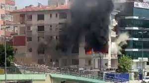 D-100 kara yolu yan yolu üzerindeki 2 katlı bir binanın bodrumunda bulunan hurda kağıtlar bilinmeyen nedenle alev aldı. Büyüyen alevler tüm binayı sararken duman kara yoluna yayıldı.