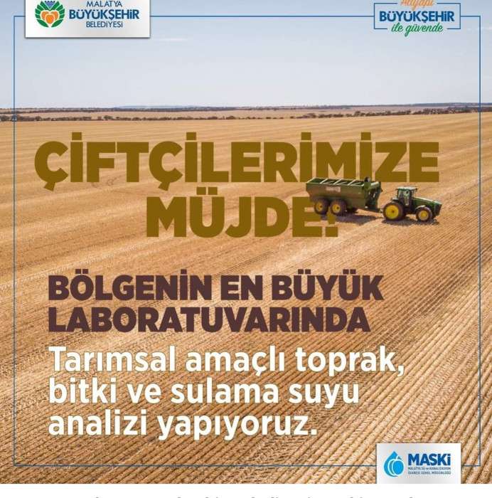 Malatya Büyükşehir Belediyesi Su ve Kanalizasyon İdaresi (MASKİ) Genel Müdürlüğü, tarafından hazırlanan proje kapsamında Malatya genelinde toprak analizlerinin ücretsiz yapılacağı duyuruldu.