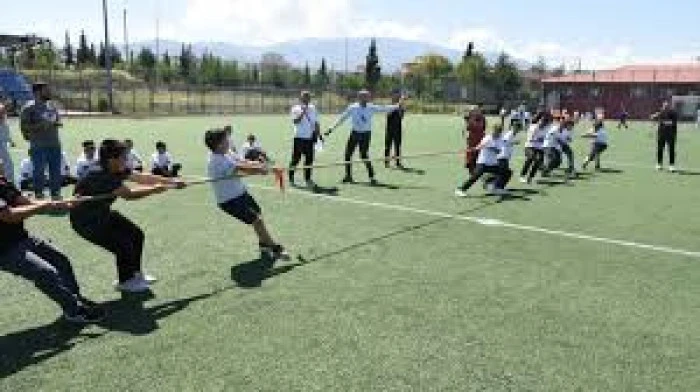 Bakır'ın konuşmasının ardından öğrenciler, halat çekme, yakan topu ve çuval yarışı gibi oyunlara hem eğlendi hem de yarıştı.