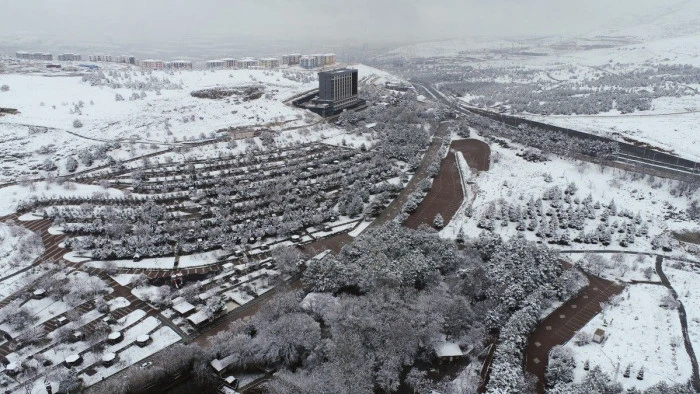 Malatyalıların uğrak yerlerinden biri olan park, kar yağışı sonrası dron ile görüntülendi.