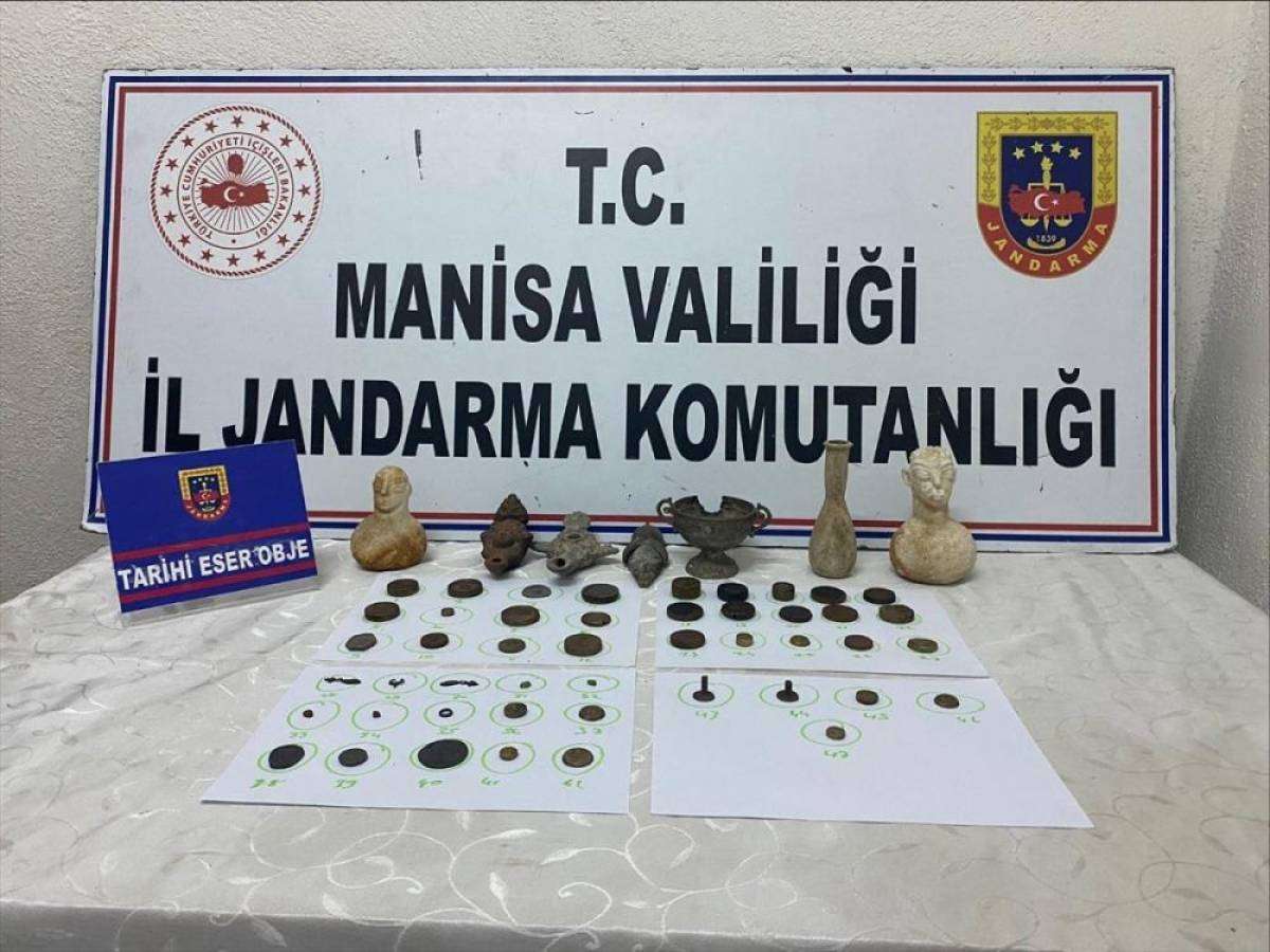 MANİSA (AA) - Manisa'nın Akhisar ilçesinde evde yapılan aramada 54 parça tarihi eser ele geçirildi.