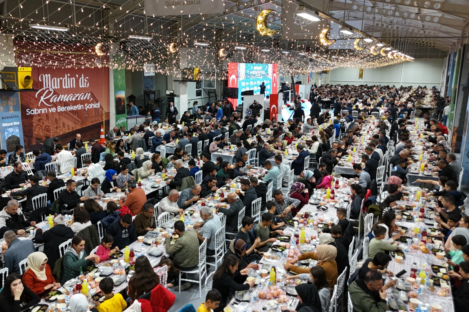 Mardin Valiliği ve Büyükşehir Belediyesi tarafından düzenlenen İlçe İftar Programları kapsamında, Artuklu ilçesinde gerçekleştirilen “Kardeşlik İftarı”, Müslüman, Süryani ve Ezidi Dinleri temsilcileri başta olmak üzere yoğun bir katılımla Artuklu Fuar Alanı’nda yapıldı.