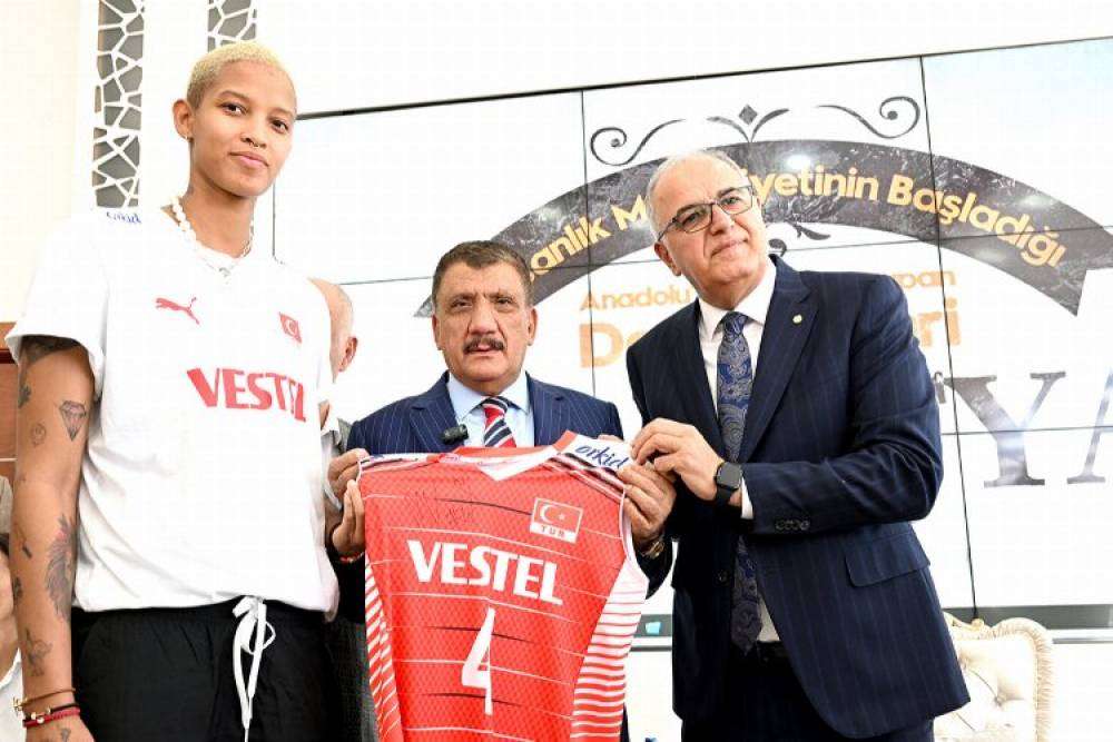 Yapılan konuşmaların ardından Başkan Gürkan Türkiye Voleybol Federasyonu Başkanı Mehmet Akif Üstündağ ve Melisa Vargas’a çeşitli hediyeler takdim etti. Melisa Vargas ise Başkan Gürkan’a A Milli takım formasını hediye etti.