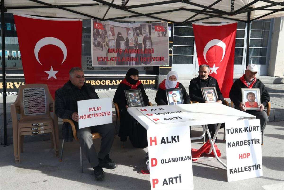 MUŞ (AA) - Muş'ta çocuklarının terör örgütü PKK tarafından dağa götürülmesinden HDP'yi sorumlu tutan aileler, partinin il başkanlığı binası önündeki oturma eylemini sürdürüyor.