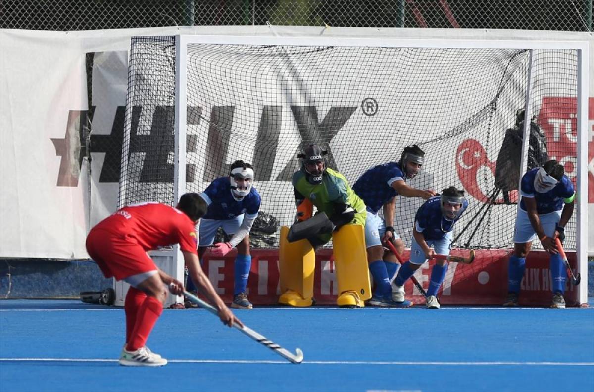 ANTALYA (AA) - FATİH ÇAKMAK - Açık Alan Hokeyi Erkekler Süper Lig play-off finaline yükselen Nevşehir Belediyespor ile Metpack Alanya Yıldızları oyuncuları, şampiyonluk kupası için finale çıkmanın sevincini yaşıyor.