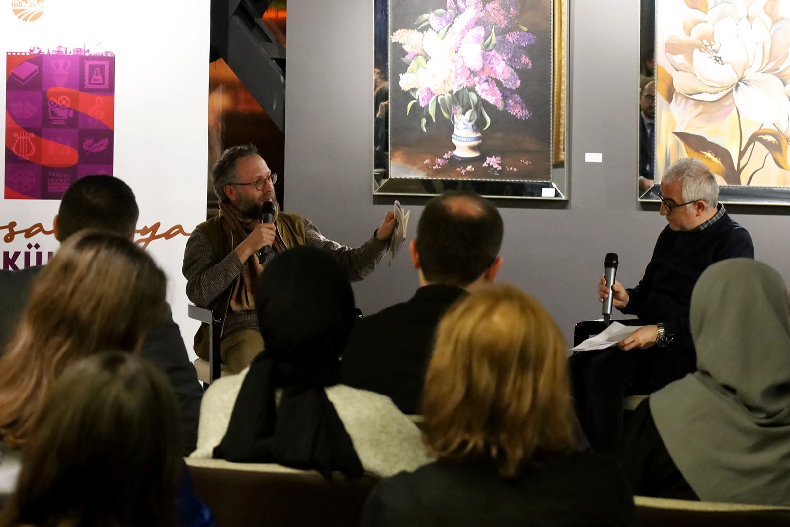 Söyleşi ve ödül törenine çok sayıda edebiyatseverin yanında, Kültür ve Sosyal İşler Dairesi Başkanı Alpay Şirin ve Sakarya İl Kültür ve Turizm Müdür Yardımcısı Muhammed Alemdar da katıldı.