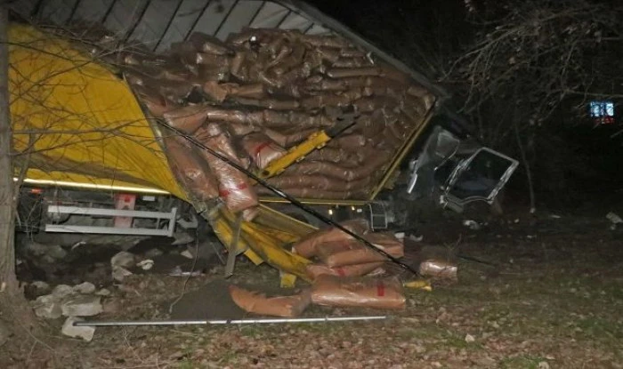 Samsun'da yoldan çıkan tırın sürücüsü yaralandı