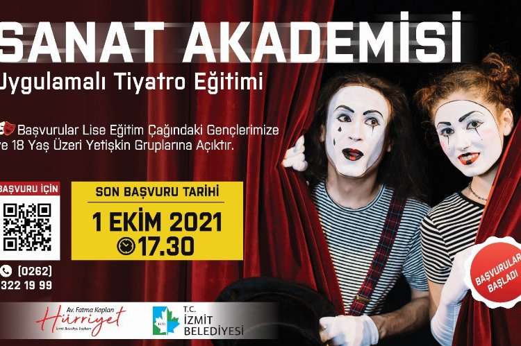 İzmit Belediyesi destekleriyle faaliyete geçen Sanat Akademisi Tiyatro Eğitimi başvuruları yarın (cuma) sona eriyor.